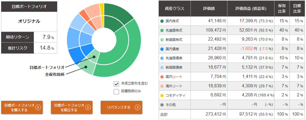 ポートフェリオをeMAXIS SIimシリーズ中心に変更した結果、信託報酬が約半分の0.1578%に減りました。